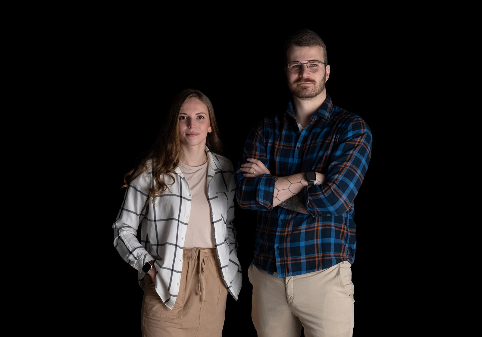 Jsme manželé a oba jsme grafici. Každý z nás přistupuje k designu jinak, ale právě v tom je naše síla. Spojujeme cit, psychologii a estetiku s racionálním uvažováním, strukturou a výkonem. Díky tomu vznikají řešení, která jsou lidská i funkční zároveň.